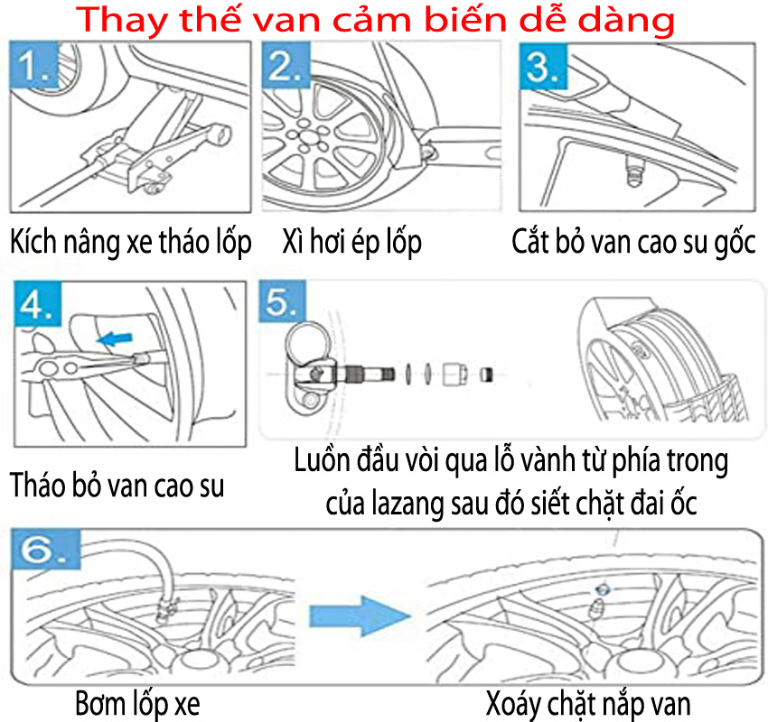 Quy trình lắp van cảm biến áp suất lốp dễ dàng