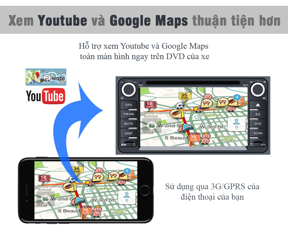 - Bạn vẫn có thể sử dụng 3G như bình thường để lên mạng, đọc báo, lướt web, tra maps,... ngay trên màn hình DVD.