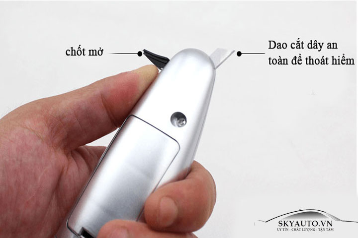 - Đầu dao nhỏ gọn, sắc bén giúp cắt đất mọi loại dây an toàn khi bạn bị kẹt dây do tai nạn.