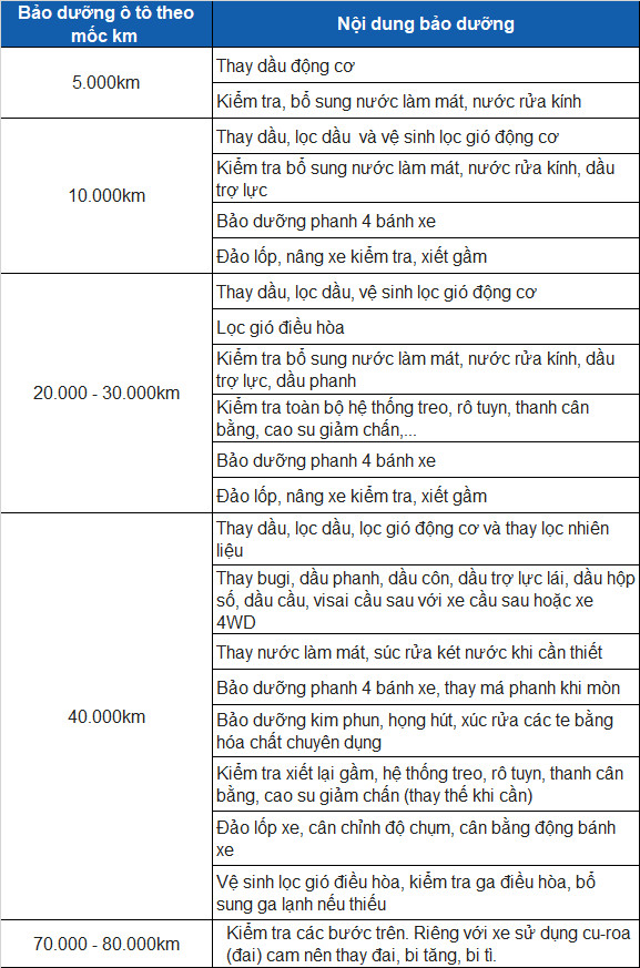 Trên đây là các mốc bảo dưỡng ô tô theo số km và thời gian mà tài xế nào cũng cần biết để chăm sóc và bảo vệ xế yêu của mình tốt hơn.