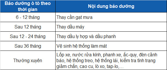 Bảo dưỡng ô tô theo thời gian