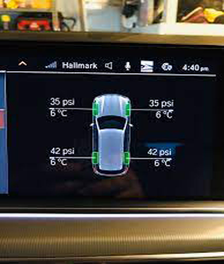 Hãng xe ô tô BMW đã đưa ra cách thức hiển thị cảm biến áp suất lốp lên bảng đồng hồ trên màn dvd nguyên bản của xe ô tô, thể hiện sự sang trọng hiện đại. hiển thị thông số áp suất 4 lốp ô tô và nhiệt độ của từng lốp xe, giúp tài xế dễ dàng quan sát.