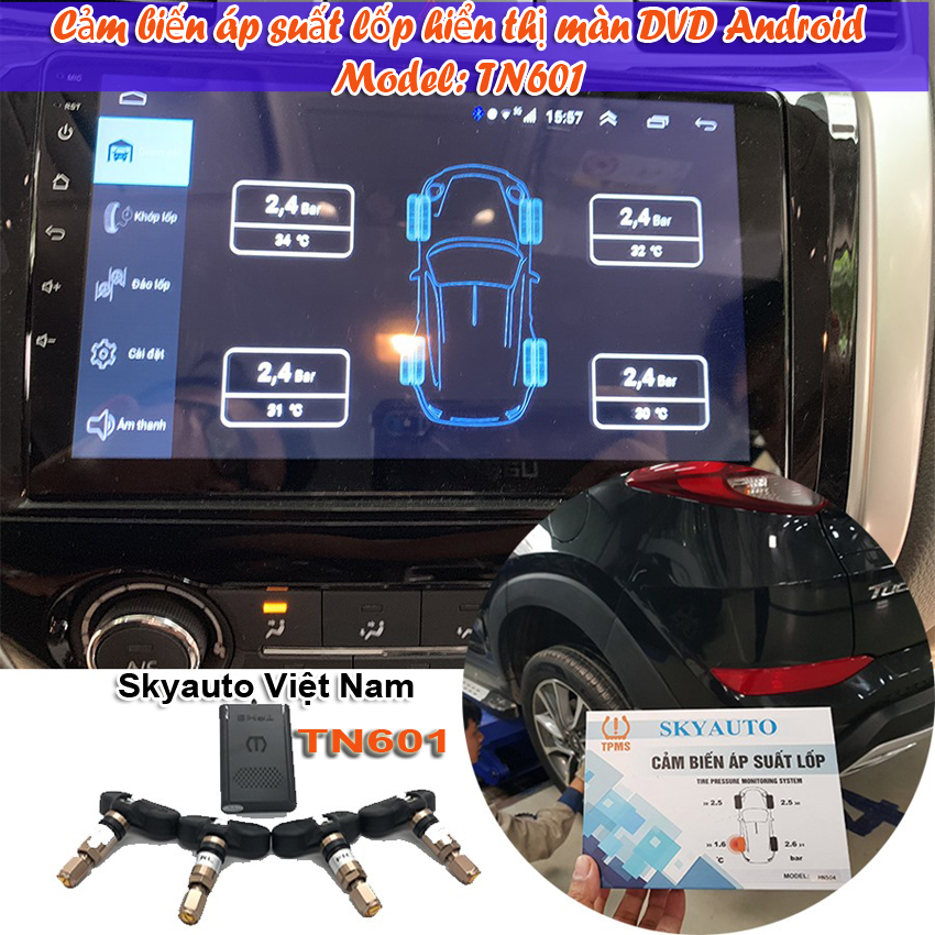 I. Cảm biến áp suất lốp hiển thị trên màn DVD TN601 SKYAUTO