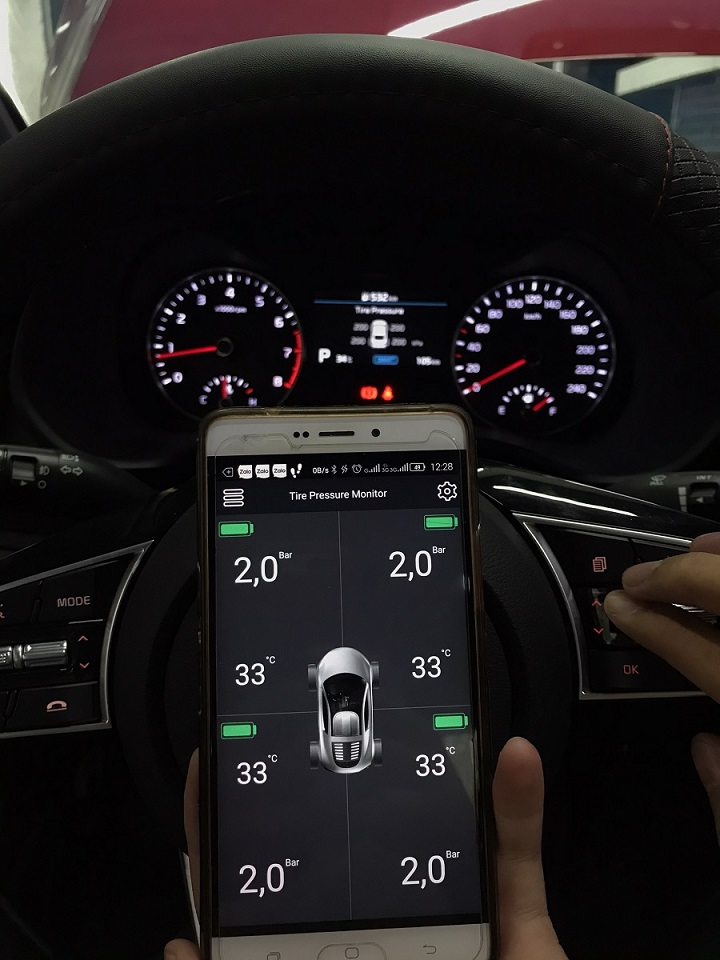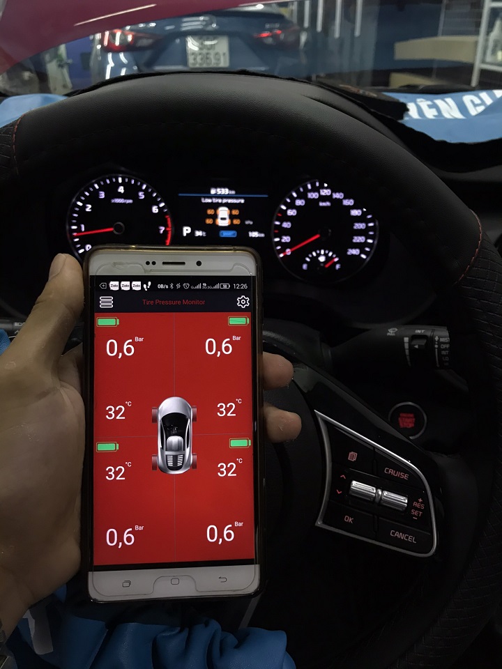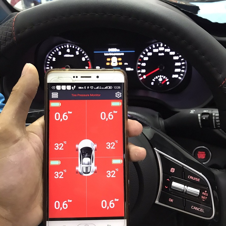 Cảm biến áp suất lốp hiển thị trên điện thoại tải App: Car TPMS