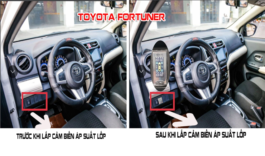 Trước tiên cần tiến hành lắp 4 van cảm biến vào 4 lốp xe ô tô, sau đó sẽ sẽ lắp màn hình hiển thị đặt trên mặt taplo và màn hình lỗ chờ lắp đặt đơn giản.