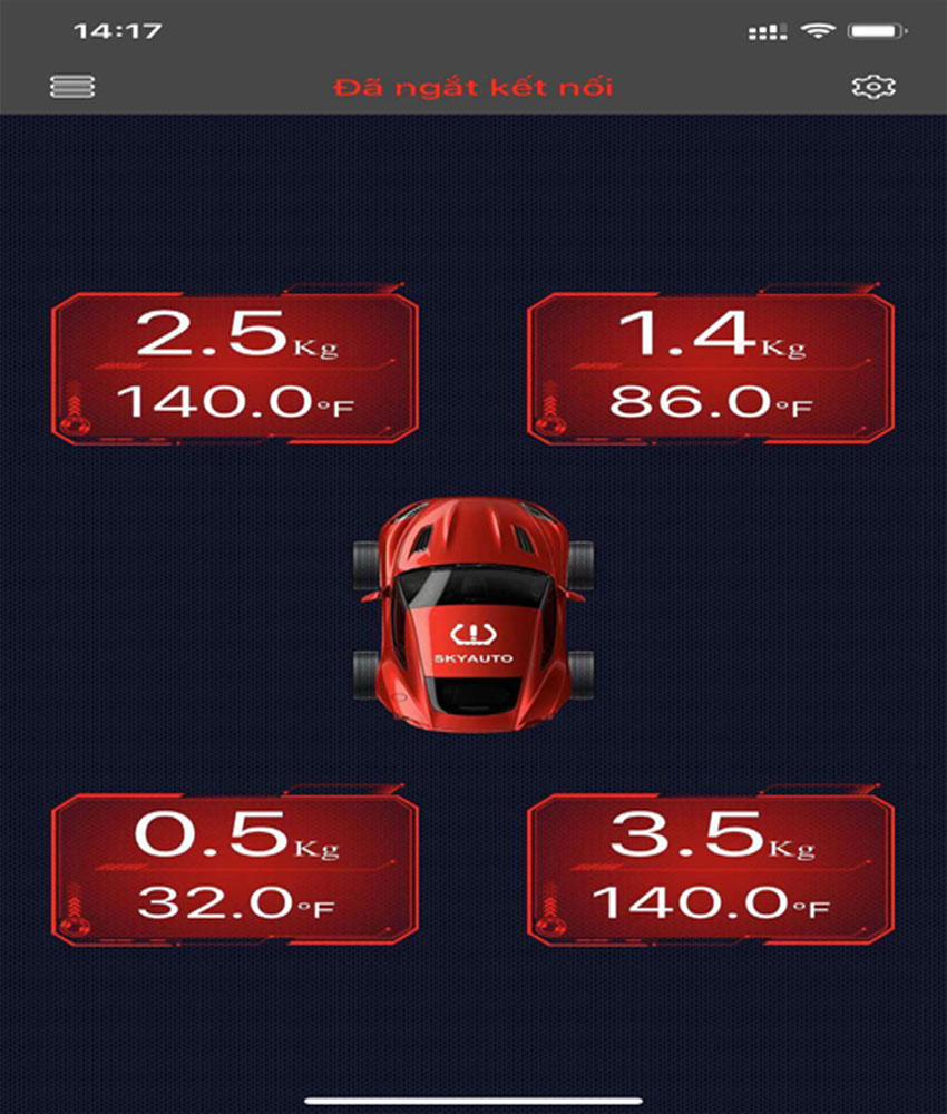 4. Hiển thị thông số áp suất lốp lên bảng taplo và điện thoại thông minh