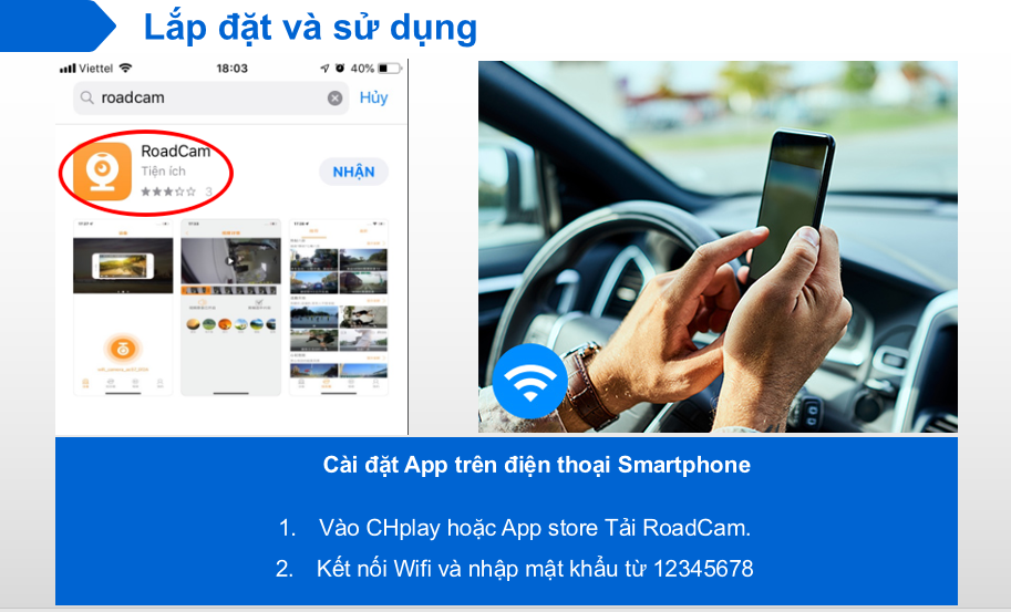 Việc lắp đặt camera hành trình vô cùng đơn giản có 2 bước