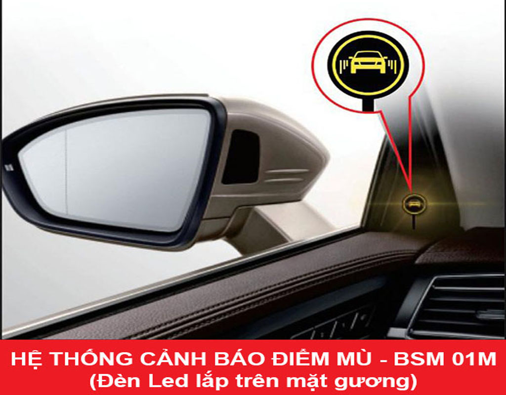 - Hệ thống cảnh báo điểm mù bao gồm các bộ phận phát sóng điện từ gắn trên gương chiếu hậu, thân xe và cản sau có nhiệm vụ phát ra sóng điện từ trong quá trình xe di chuyển.