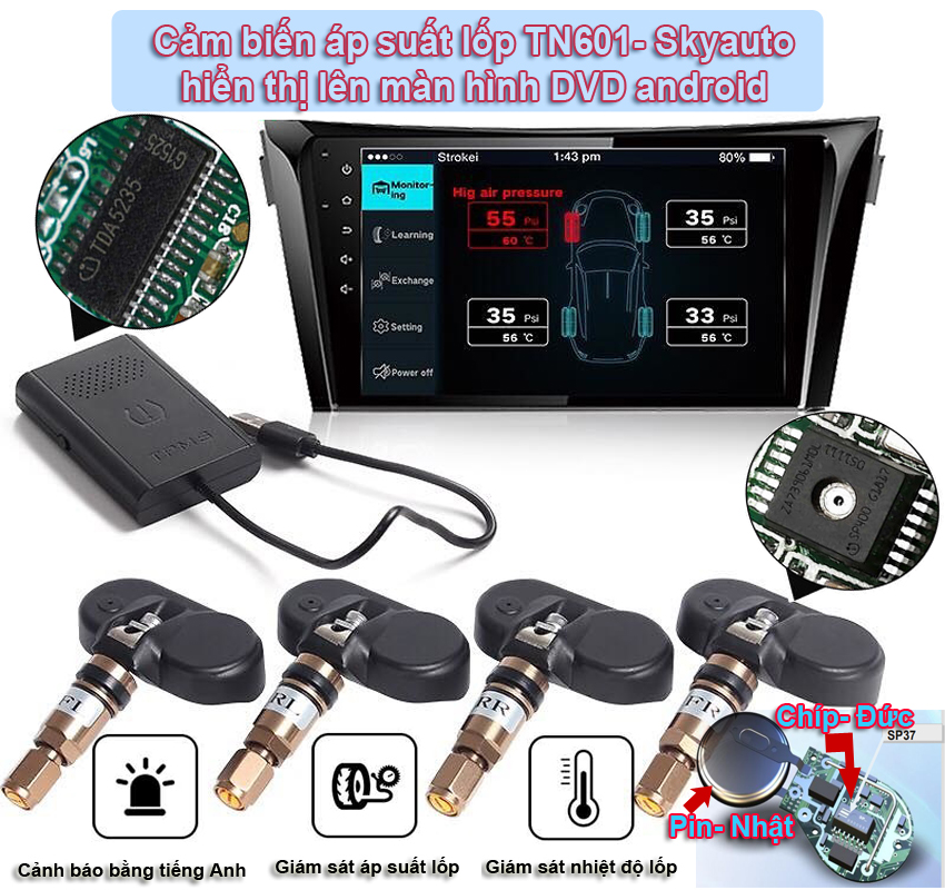 1. Cảm biến áp suất lốp tích hợp trên màn hình DVD-TN601