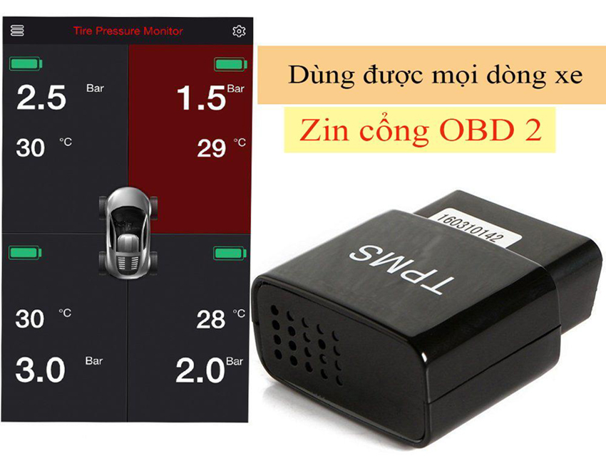 - Màn hình 3.5 inch hiển thị nhiệt độ, áp suất lốp cùng lúc cả 04 bánh xe.