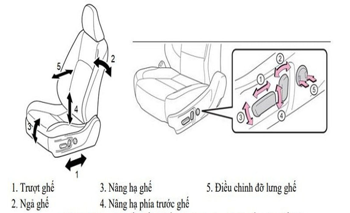 - Có thể điều chỉnh được nhiều khác nhau, bao gồm: cao - thấp - tiến- lùi, độ cao lưng, độ ôm cơ thể. Các tài xế có thể thoải mái điều chỉnh theo ý muốn của mình.