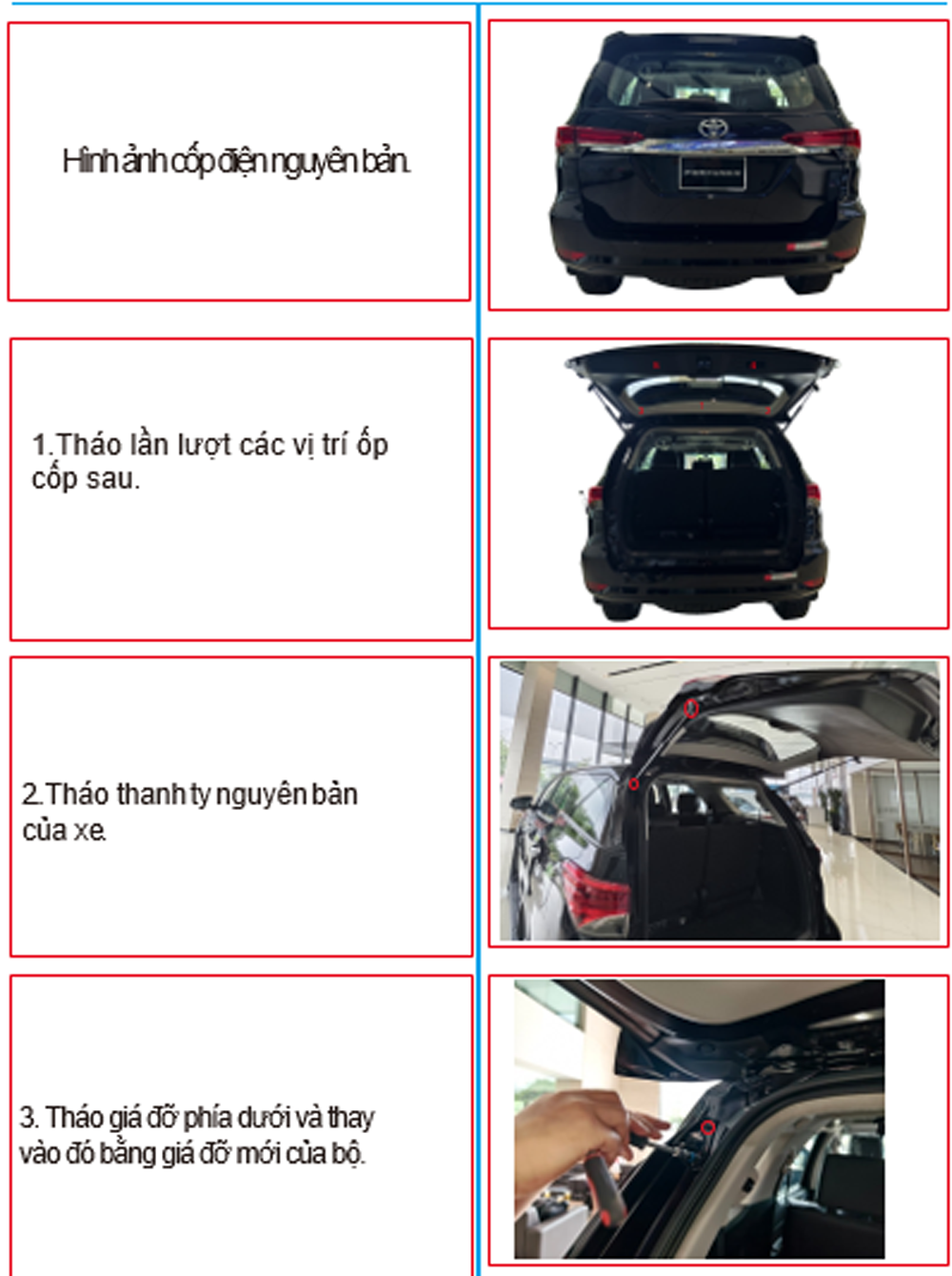 2. Lắp đăt cốp điện ô tô cao cấp Fortuner