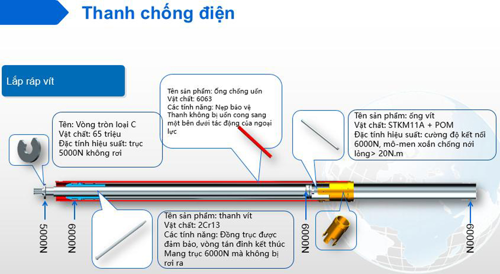 Lắp ráp vít trong thanh chống