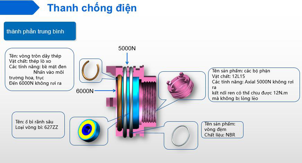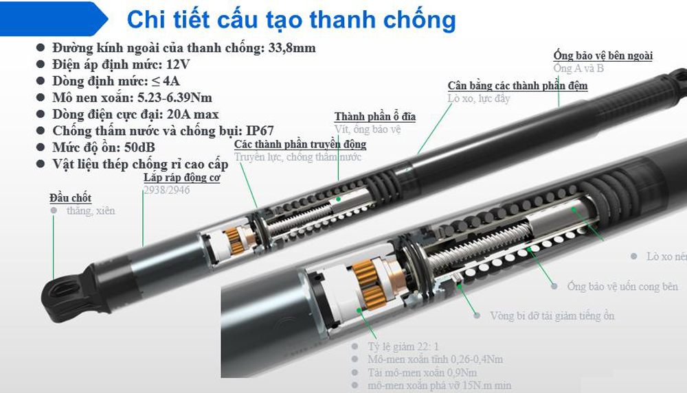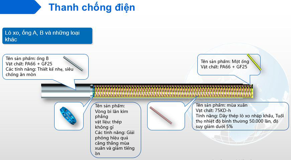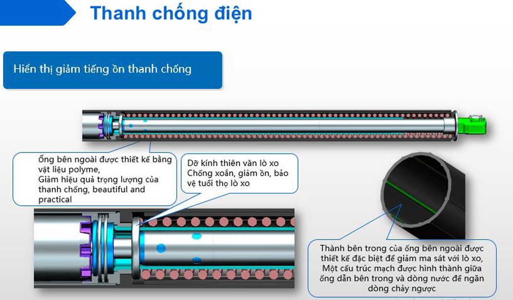 Thiết kế để giảm tiếng ồn khi thanh chống hoạt động, giảm thiểu hào mòn khi vận hành, làm tăng tuổi thọ của thanh chống.