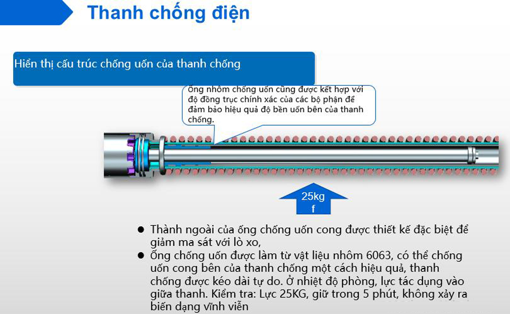 Thiết kế thanh chống đủ kích thước, để có thể nâng cao mạnh mẽ với những cốp điện nặng.