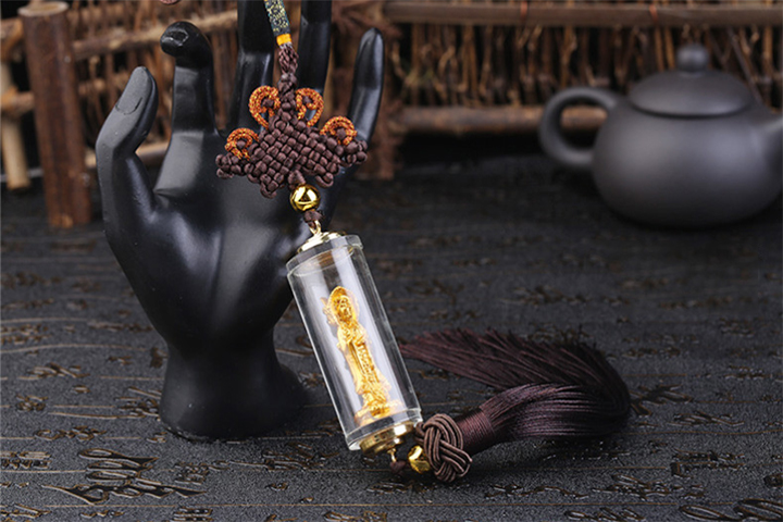 Treo hình Quan Thế Âm Bồ Tát trên xe, vừa là để trang trí cho xe sang trọng hơn, đẹp hơn, lại vừa để cho những người ngồi trong xe nhìn thấy hình tượng Quan Thế Âm Bồ Tát, khởi tâm cung kính, trong tâm nghĩ đến danh hiệu ngài, đó là niệm danh hiệu ngài. Nhờ vậy, nương theo đại nguyện của ngài nên những người ngồi trên xe sẽ được an toàn.