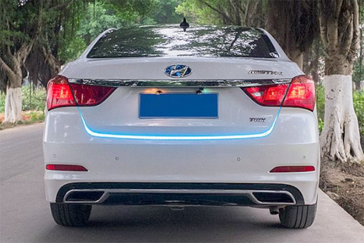 Các dải đèn Led này có kích thước nhỏ gọn được dán vào phía sau của cốp xe bằng băng dính 3M.