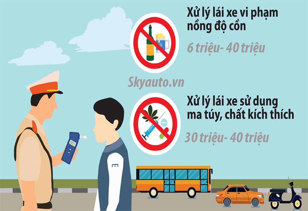 Đi ô tô sử dụng chất kích thích và nồng độ cồn phạt bao nhiêu?
