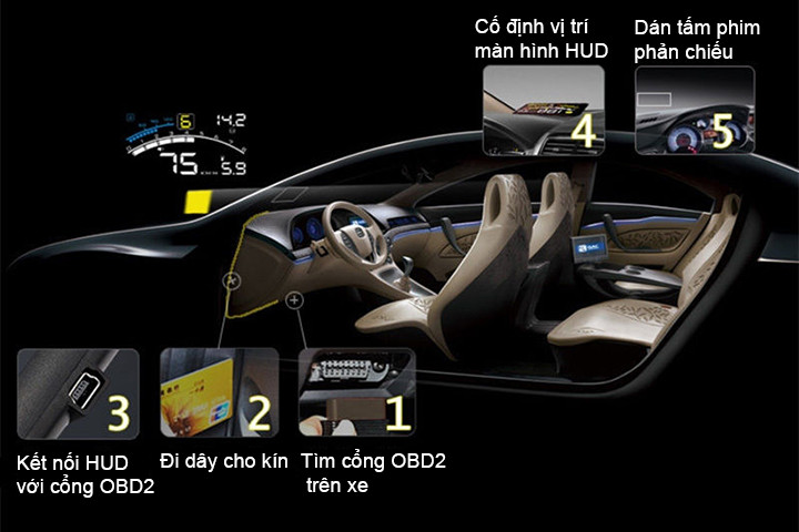 Hud lắp đặt cắm vào OBD2 để lấy tín hiệu nguồn, khi vận hành toàn bộ thông số được lấy từ dữ liệu của máy do vậy tỷ lệ sai số rất ít...