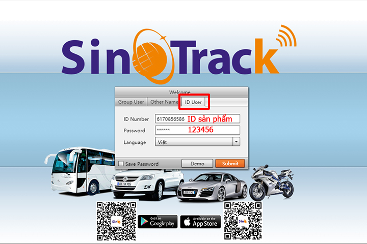 – Bạn đăng nhập bằng số ID sản phẩm: Nhập số ID và mật khẩu mặc định 123456 để đăng nhập.
