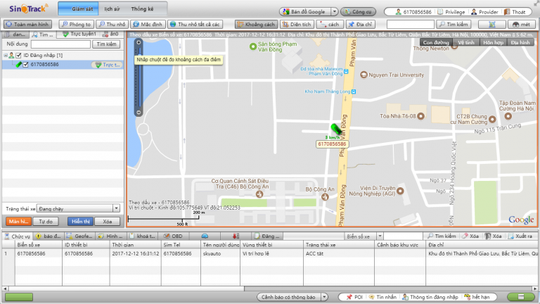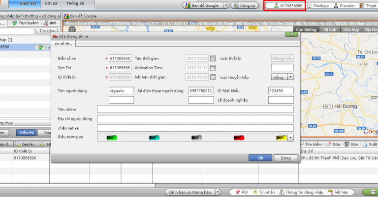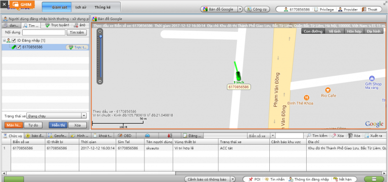 Giao diện giám sát trực tuyến vị trí xe ô tô