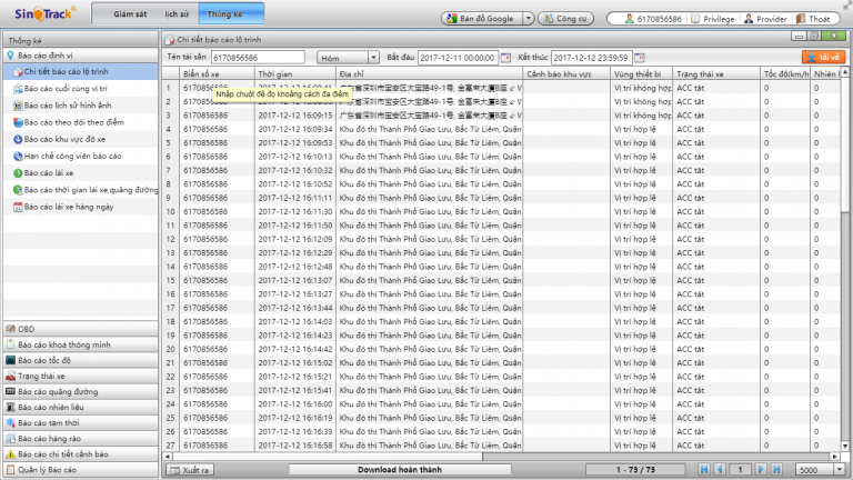 Báo cáo thống kê chi tiết các thông số của xe trong quá trình sử dụng thiết bị giám sát