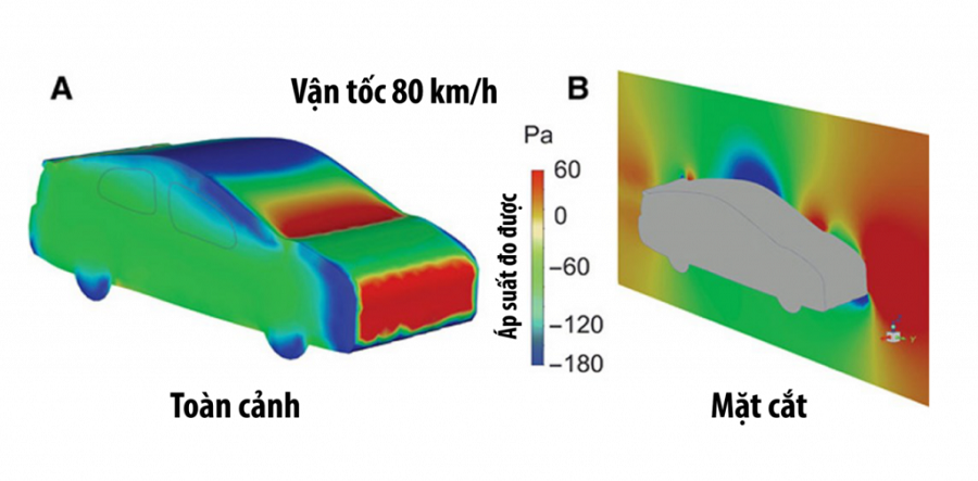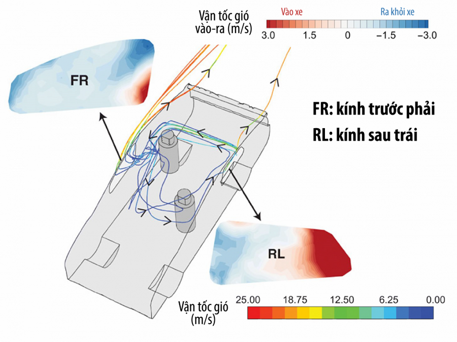 Ngoài ra, theo lý thuyết khí động lực học, khi gió thổi qua 1 chiếc xe đang chạy trên đường, áp suất không khí ở 2 cửa sau sẽ cao hơn so với 2 cửa trước. Vì vậy, không khí sẽ chuyển động theo hướng thâm nhập vào khoang cabin từ 2 cửa sau và thoát ra 2 cửa sổ trước của xe.