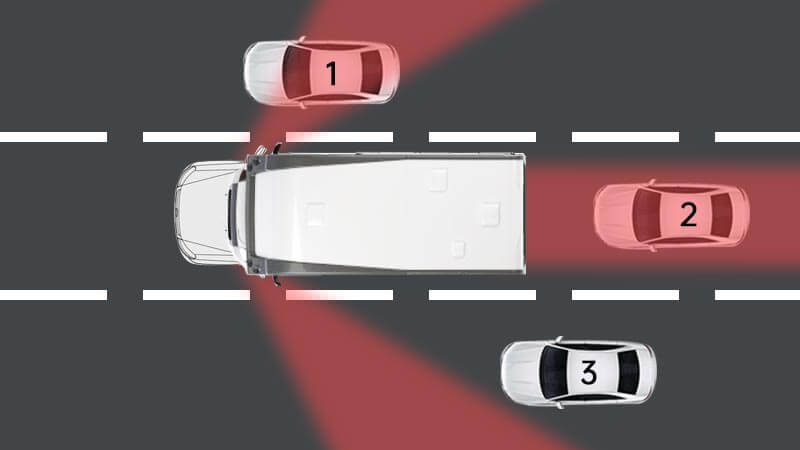 tần số được phát ra để quét các vật cản trong đó 2 radar được lắp phía sau để quét tất cả những phương tiện phía sau tiếp cận vùng mù.