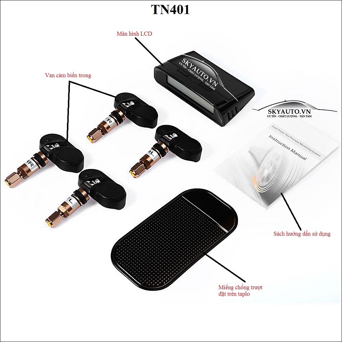 Trong thiết bị TPMS có bao gồm 1 tấm chống trượt có 2 mặt, trong đó 1 mặt tiếp xúc với với màn hình hiển thị, 1 mặt còn lại tiếp xúc với mặt taplo của xe.