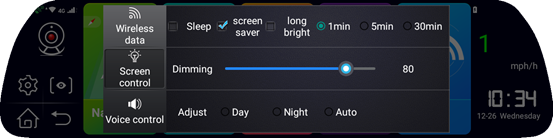 bên trái màn hình chính để vào giao diện cài đặt nhanh. Trong giao diện này, người dùng có thể thực hiện cài đặt cho ngày không dây, điều khiển màn hình và điều khiển bằng giọng nói, v.v. như hình ảnh hiển thị bên dưới.