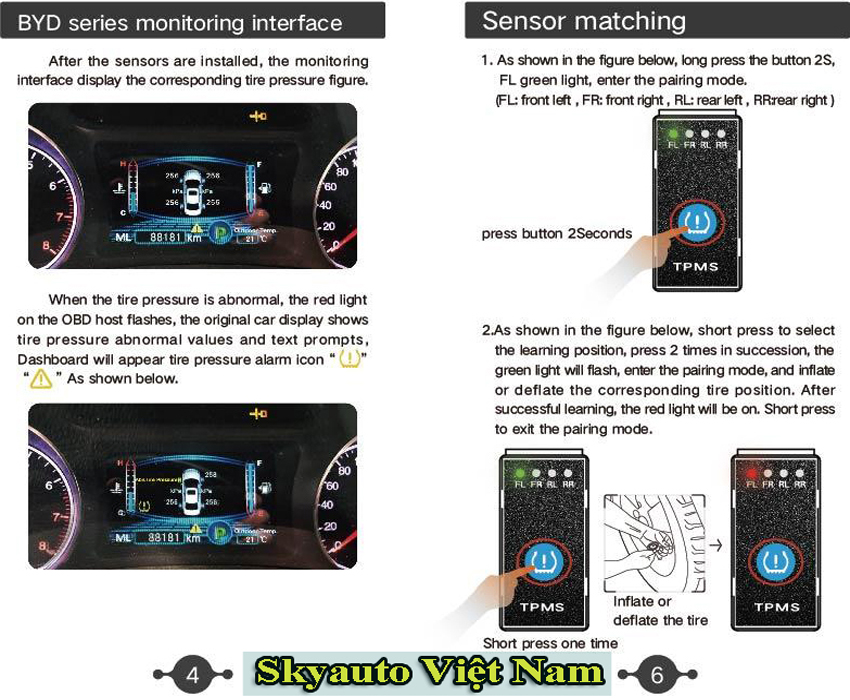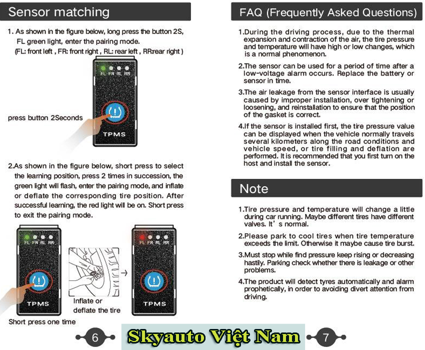 Hướng dẫn sử dụng và cài đặt cảm biến áp suất lốp theo xe- SKYAUTO