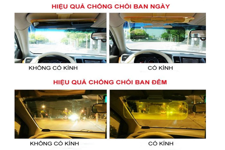 - Kính chống chói cho ô tô ngày và đêm này được thiết kế hiện đại cho phép xoay 180 độ và đặc biện bạn có thể điều chỉnh độ cao thấp mà không cần phải chỉnh ghế ngồi như phiên bản trước nữa. Điều này khắc phục được độ cao ở những xe 5 chỗ hoặc 7 chỗ khoảng cách từ tấm chắn nắng xuống tầm nhìn quá cao. Như vậy, ở phiên bản mới này, hoàn toàn tương thích với tất cả các loại xe từ 4 chỗ ngồi cho đến 7 chỗ ngồi.
