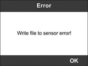 5) Nhấn nút Y để ghi ID cảm biến mới được tạo vào MX-Sensor và màn hình sẽ hiển thị như bên dưới hoặc nút N để thoát mà không thay đổi. Nếu thông báo lỗi hiển thị như bên dưới, vui lòng thử một loại cảm biến MX khác, vì loại cảm biến MX được lắp vào có thể không chính xác.