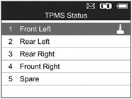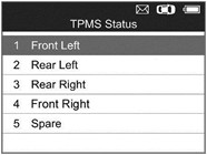 1) Sử dụng nút cuộn LÊN / XUỐNG và nút cuộn TRÁI / PHẢI để chọn TPMS từ Menu chính và nhấn nút Y để xác nhận.