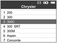 3) Quan sát tùy chọn menu và sử dụng nút cuộn LÊN / XUỐNG để chọn theo kiểu xe và năm để xác định chiếc xe đang được kiểm tra.
