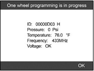 Sau khi lập trình xong, một loạt âm thanh bíp sẽ được phát ra và công cụ sẽ hiển thị các chi tiết dữ liệu như ID cảm biến, nhiệt độ và điện áp pin sau khi thử nghiệm MX-Sensor được lập trình mới.