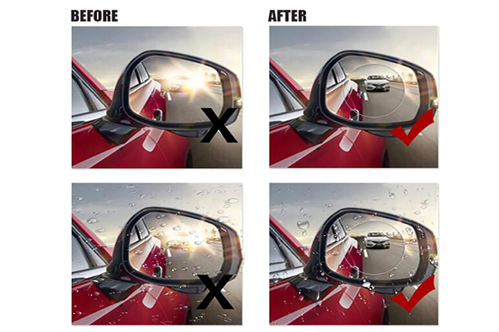 - Hiệu quả chống nước hoàn hảo, giúp bạn quan sát gương dưới trời mưa, đảm bảo tầm nhìn của người lái xe luôn rõ nét dưới mưa và ban đêm cả khi di chuyển ở tốc độ cao giúp bạn lái xe an toàn tuyệt đối.