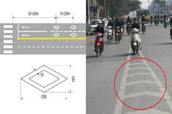 Vạch này chỉ mang tính chất hình ảnh, giúp người lái xe phân biệt rõ hơn. Những xe đi vào khu vực này phải di chuyển thao hướng mũi tên trên đường, nếu không sẽ bị xử phạt lỗi “không tuân thủ hiệu lệnh của biển báo, vạch kẻ đường”.