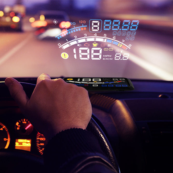 Việc lái xe sẽ không còn tẻ nhạt, buồn chán nếu như có kết hợp giữa phụ kiện công nghệ thông minh với việc lái xe. Hiển thị tốc độ trên kính lái là màn hình tương tác thực tế ảo, dựa vào sự phản xạ của ánh sáng. Để người lái không cần nhìn vào bảng đồng hồ hiển thị ở dưới mà vẫn theo dõi được chính xác mọi thông số quan trọng của xe. HUD hiển thị lên kính lái đầy đủ thông tin về tốc độ, vận tốc, mức tiêu thụ nhiên liệu,… vừa nhanh chóng, vừa đảm bảo an toàn.