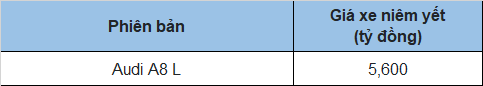 Năm 2021, Audi A8 được bán tại Việt Nam với mức giá như sau: