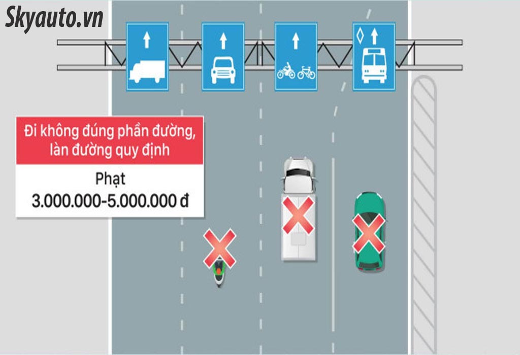 - Đi không đúng phần đường hoặc làn đường quy định: bị phạt từ 03 - 05 triệu đồng. Đồng thời, tước quyền sử dụng Giấy phép lái xe từ 01 - 03 tháng.