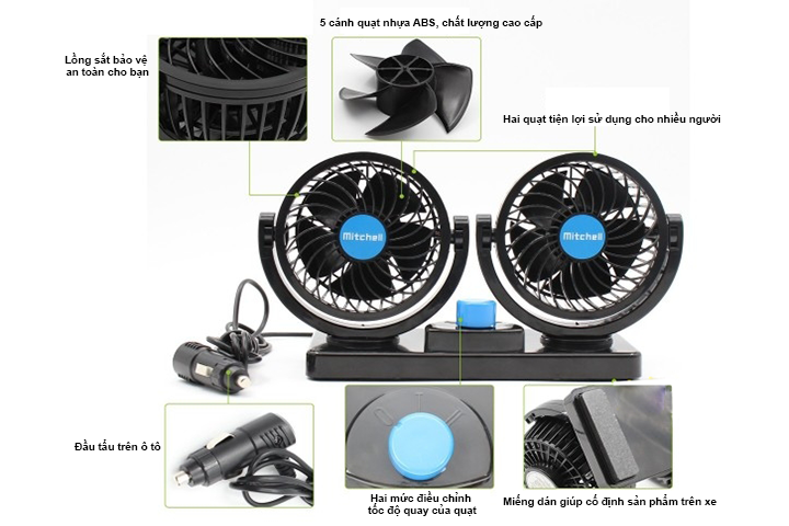 Với quạt đôi mini vô cùng tiện lợi ngay cả khi chờ khách hàng, bạn vẫn mát nhờ thiết bị dùng nguồn điện từ tẩu ô tô, mà không tốn xăng & dầu vì phải nổ máy để bật điều hòa.