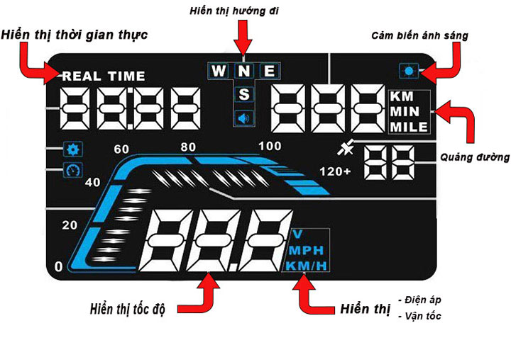 - Chế độ chỉnh sáng tự động: thiết bị này có khả năng tự điều chỉnh cường độ ánh sáng sao cho phù hợp. Nên dù lái xe vào ban ngày hay ban đêm thì người lái cũng có thể theo dõi các thông số một cách dễ dàng nhất.