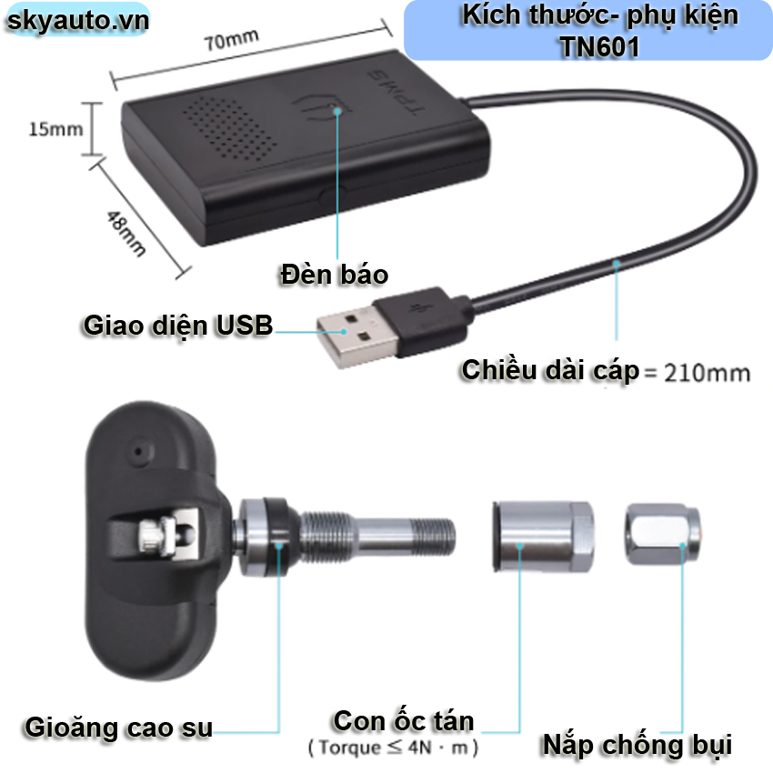 - Với cảm biến áp suất lốp TN601 trước khi lắp đặt cần phải hack màn hình cài đặt để có thể sử dụng được Youtube và internet. Do vậy hãy liên hệ Skyauto Việt Nam để được tư vấn mở màn hình DVD chế độ Android.